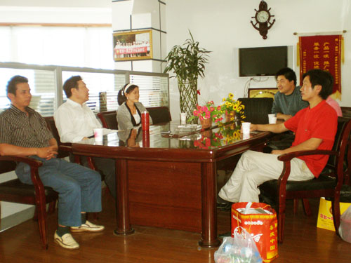 河南杜先生(左一)广西陆先生(左二)正向魏总监详细咨询技术问题