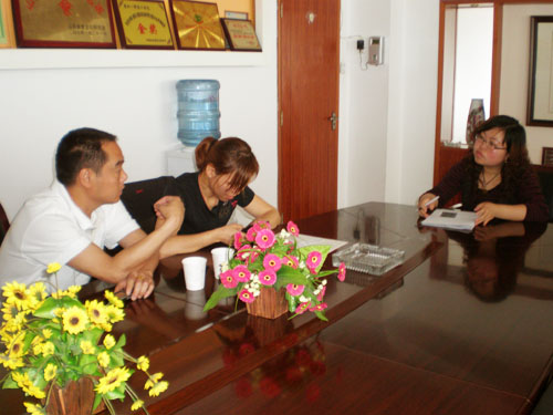 ( 1 )、广西李女士(中间)正与总部陈经理(右一)友好洽谈