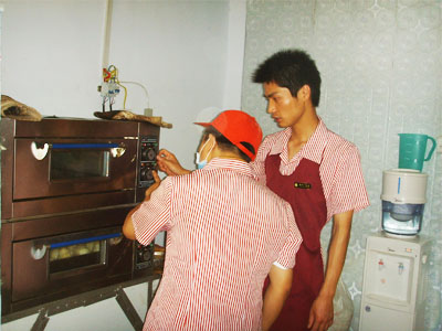 郑州代理李刚先生正在示范烤箱的操作