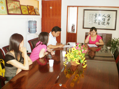 湖南的李女士(左二)正在签约(左一为李女士的随从人员)