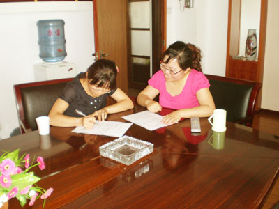 福建的丘女士正在签约(左一)