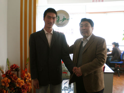 2008 年 4月 25日,来自云南的许先生和广西的黄先生,同一天来到烟台康加一总部。他们成功签约后,要接受公司总部为期一周左右的技术和销售培训。魏总勉励他们好好工作,并与之合影留念。