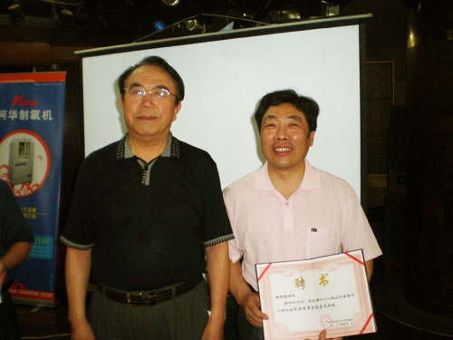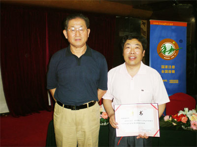 山东省食文化研究会会长赵忠云(左)向魏总(右)授予聘书