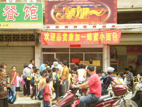 广西省百色市靖西县“康加一”面包第592号加盟店2008年6月19日开业。在总部的科学辅导下,顺利的赢得了市场。
