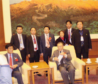 魏总(后左三)和全国工商联副主席王治国(前右)等中央领导同志在人民大会堂合影留念2006年12月2日