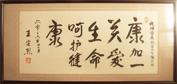 全国工商联副主席王治国为康加一题词