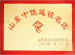 康加一蜂蜜小面包店被授予“山东十佳连锁名店”称号