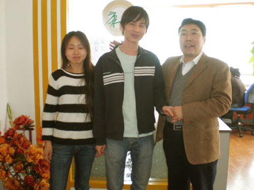 2008 年 4月 25日,来自云南的许先生和广西的黄先生,同一天来到烟台康加一总部。他们成功签约后,要接受公司总部为期一周左右的技术和销售培训。魏总勉励他们好好工作,并与之合影留念。