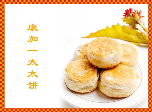 香酥“太太饼”是“康加一”食品系列中的二代产品,由清代名厨魏焰烽第十五代孙——烟台康怡食品有限公司董事长兼总经理魏丙乙先生,精心研制而成。其特点是外酥内软,馅多皮薄,口感多样,香酥可口,五谷精料,绿色营养,价格适中,大江南北、国内国外,广受欢迎。“太太饼”以中国古老饮食文化为底蕴,融合传统式火烧与西方现代面点制作技巧,传承千年养生理念,引领现代美食潮流。 香酥“太太饼”不仅馅料挑选精细,其工艺制作也十分独到,经特殊烤制,外皮更具香酥层次,色泽鲜亮,油而不腻,上下平衡,层次分明,望之油然心动,食之则口感酥脆,回味无穷。